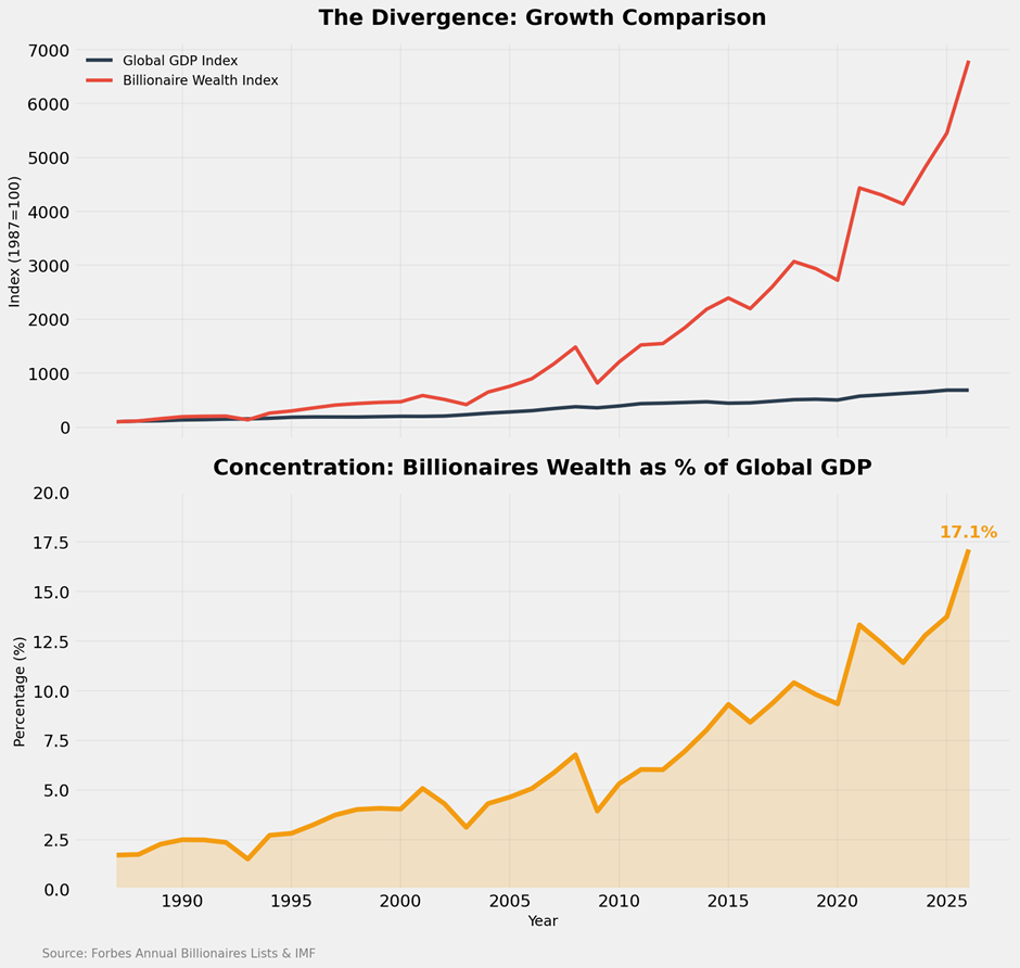 Another record-shattering year for the world’s richest people. Both the number and the wealth of the world’s billionaires are at their highest levels. There are now a record 3,428 billionaires worldwide. Their combined wealth is a record $20.5 trillion, equivalent to the size of mainland China’s economy. Their wealth is equivalent to 17.1% of the global GDP, compared to less than 5% in 2010.