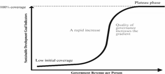 The model takes into account governance. As Government revenue increases, the quality of governance tends to increase, and so there is less revenue lost to corruption, etc. The model also includes governance indicators that show how increased resources improve governance itself, which in turn improves SDGs, creating a virtuous circle.