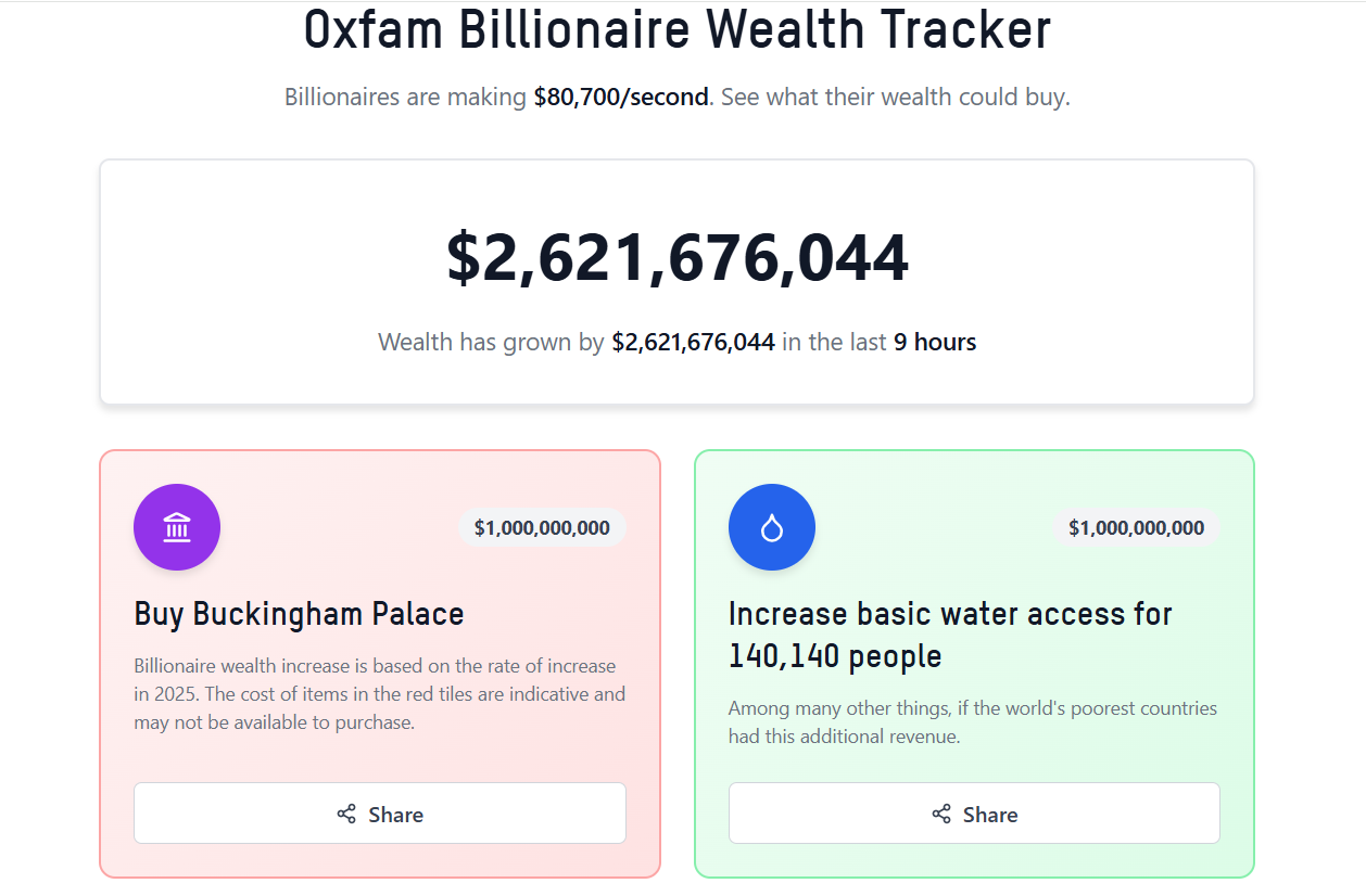 Oxfam’s latest campaign tool, a tracker that counts how much billionaires are making every second, and what that money could pay for, launched last night.