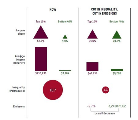 The rich are destroying the environment. Last year, we tracked the private jets, super yachts and investments of 50 of the world’s richest people and found that they emit more on average in 90 minutes than the average person does in a lifetime. Cutting inequality could massively reduce global emissions while also ending poverty. If global income was redistributed to ensure that everyone earned above $25 a day, then global emissions would be reduced by 10% (equivalent to the European Union’s total emissions).